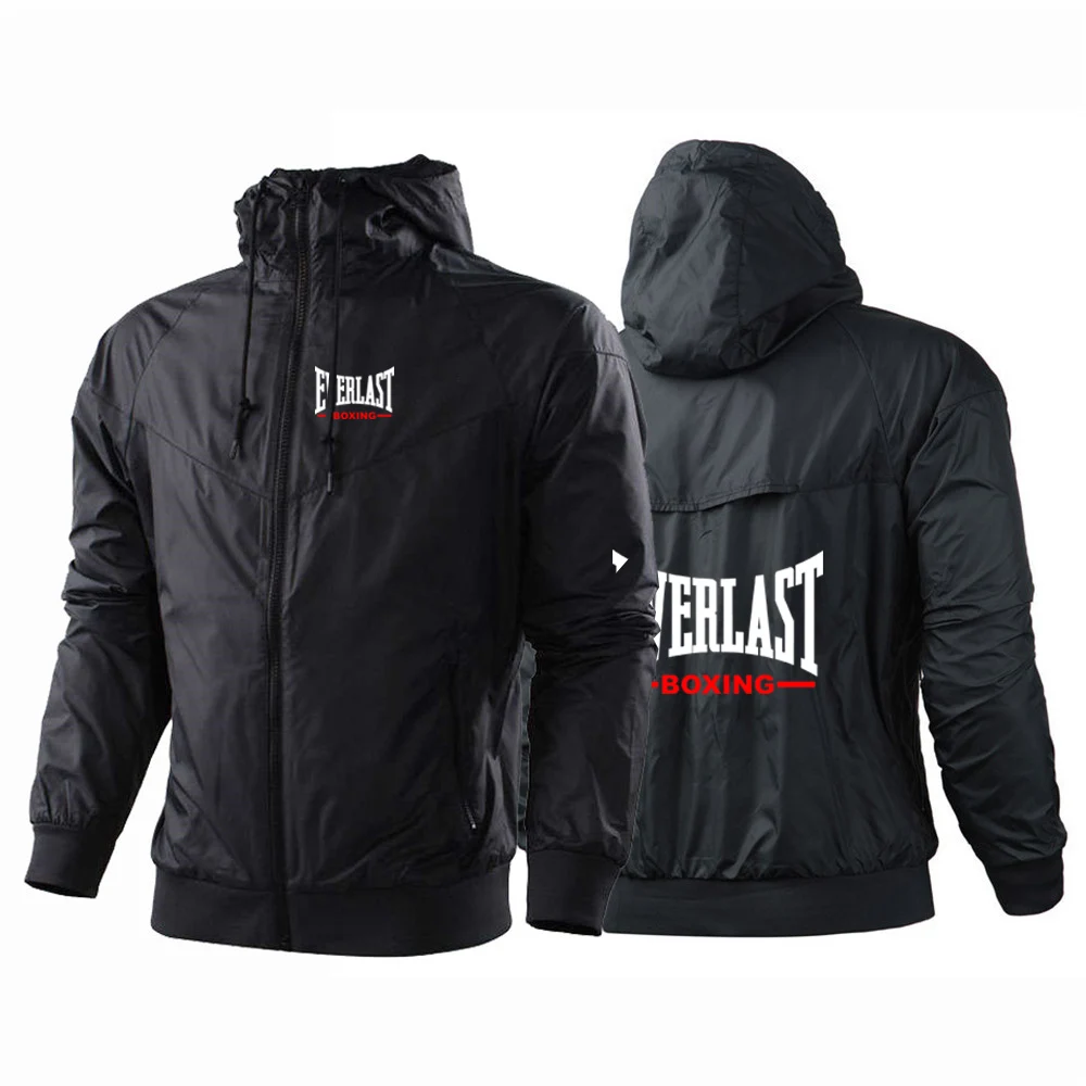 Everlast Printing 2025 Men's Spring Autumn Thin Windproof Casual Hooded Color Matching Fashion Five-Color Windbreaker Coat